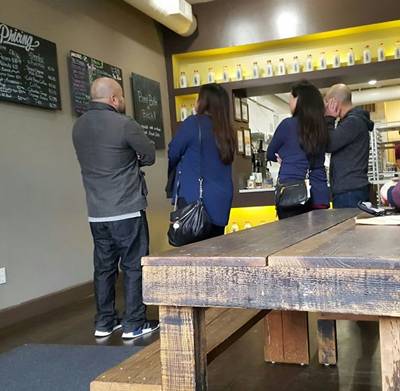 10. Mau pesan makanan, dua pasangan ini tanpa sengaja mengenakan baju yang sama.